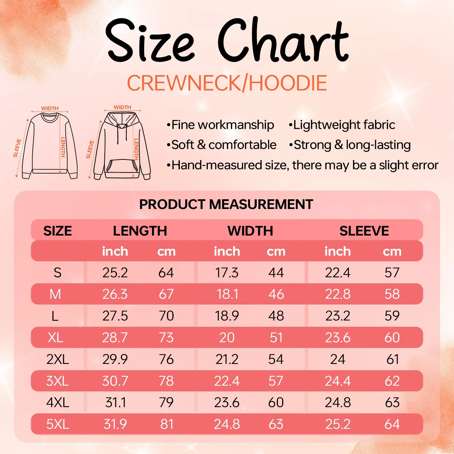Available in 8 sizes: S/M/L/XL/2XL/3XL/4XL/5XL